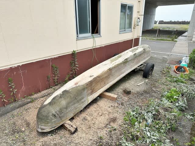 次回は6月3日のイベントの参加者の手を借りて、広い駐車場に人力移動、シアーライン(船縁のカーブ)の改良と船首のひび割れ対策。うまくいけばお昼から海に出られると思う。