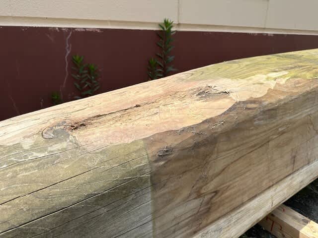 手斧でハツリ、電動カンナで粗く平らに、センで仕上げたら、ちょっと見には腐っていたとは思えないほど目立たなくなってオッケイ牧場!