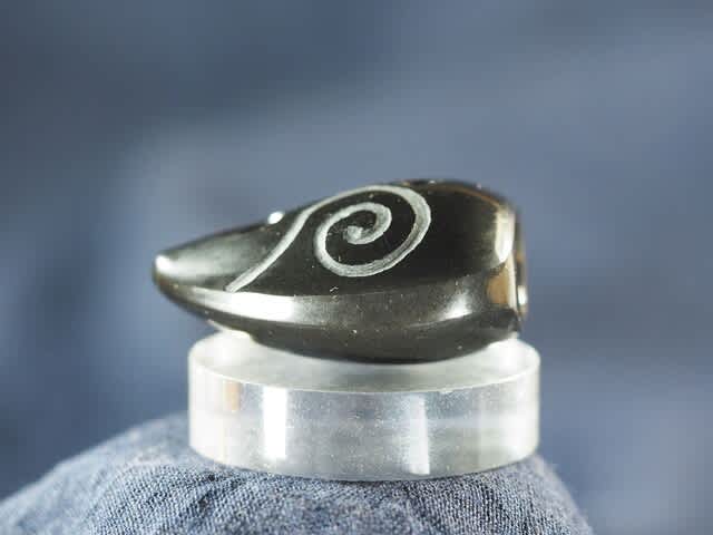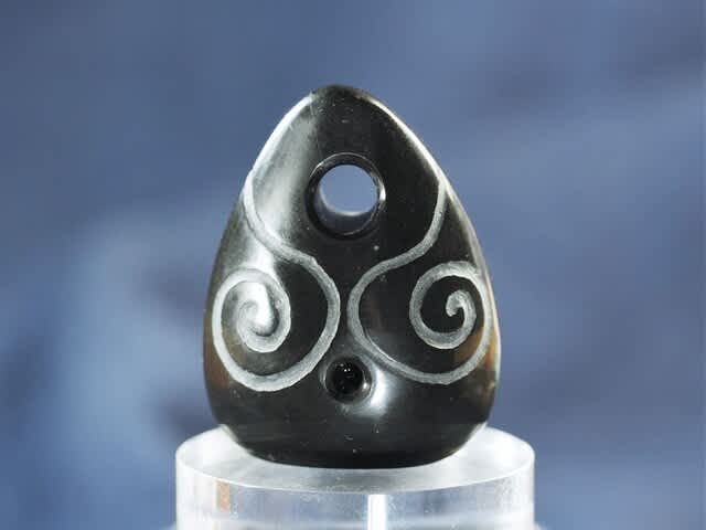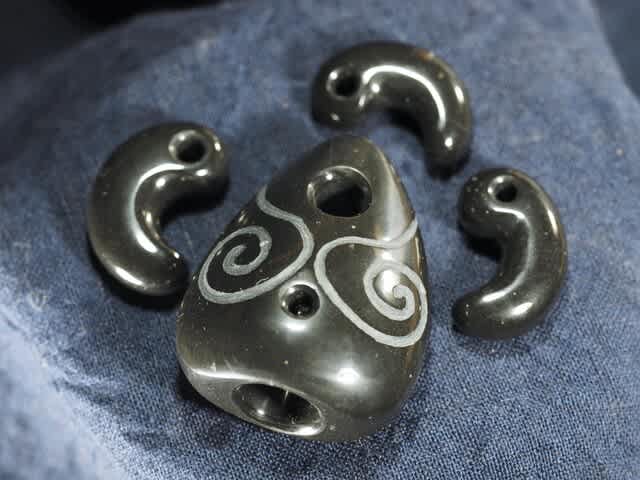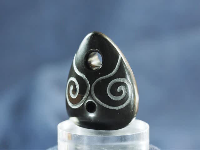 その反面、ヒスイよりモース硬度は高くても頑丈さ(タフネス)は低いので線刻は楽だし、黒地だから目立ってよろしい。