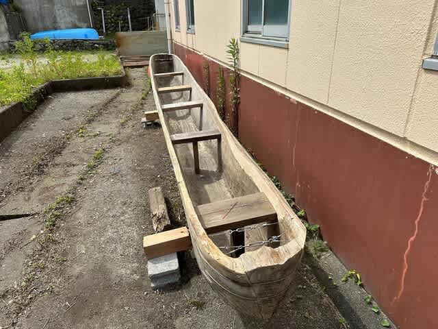 ちなみに丸木舟は乾燥すると乾燥収縮してヒビ割れしやすくなるので、座席はその曲げ応力を相殺する横梁の機能もある。