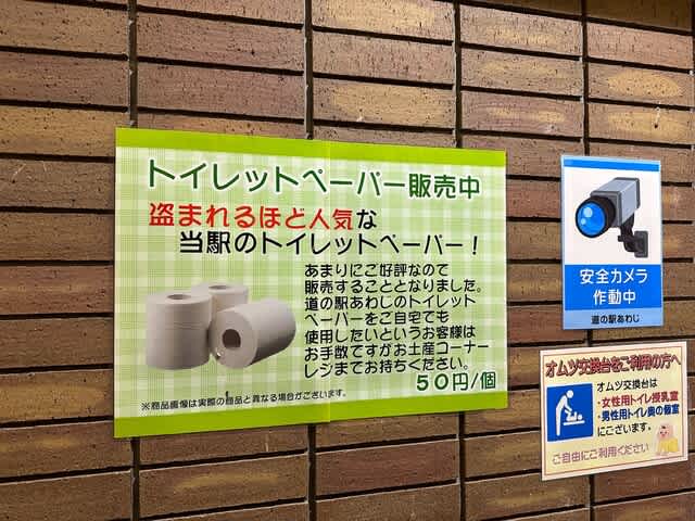 「盗まれるほど大人気のトイレットペーパーを売店で発売中!」など、道の駅の看板も面白味ががあっていい。