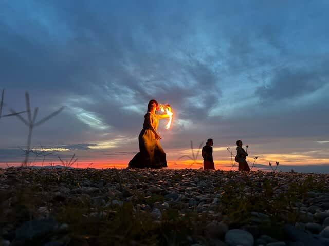 ライブの合間の余興のように火起こしさせられ、情けないことに小さなバーベキューコンロの上で焚火にしたのだが、薪をわずかしか用意していないので、誰にかえりみられることなく淋しく立ち消えていった。火起こしの瞬間の写真をインスタにあげたかったのだろうか?そんなことのためにわたしは片道11時間もかけて淡路島に行ったのか?