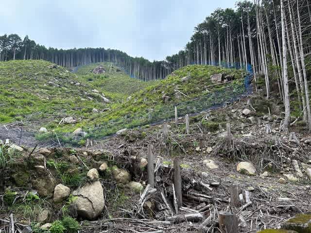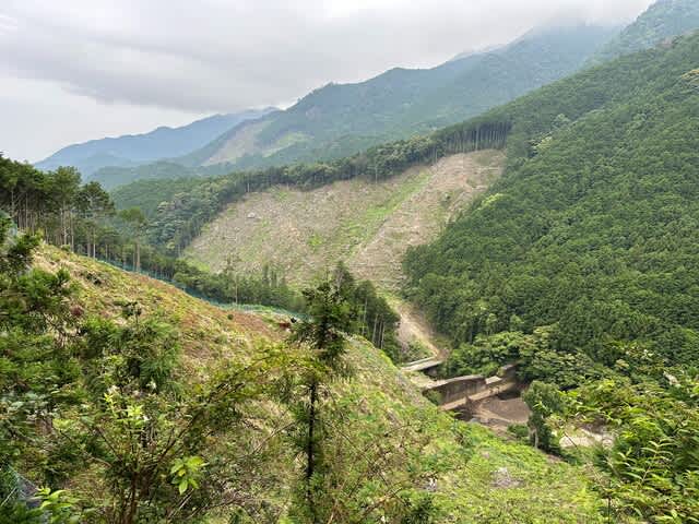 奈良から熊野に抜ける林道で、丸裸の山の斜面がいくつもあった。