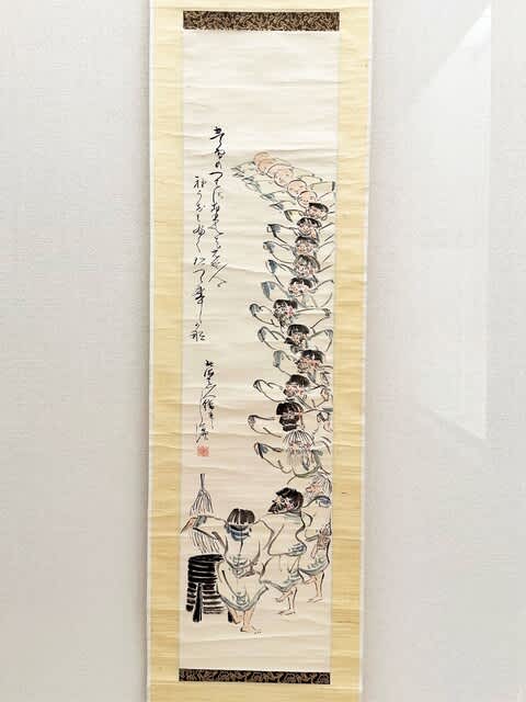 映画のコマ割りを繋げたような大胆な構図が心憎く、歌い声が聴こえてきそうな臨場感がある。既存の絵画手法にとらわれない武四郎の自由奔放さが北斎のようだ。こういった処も武四郎の人となりが伺える。