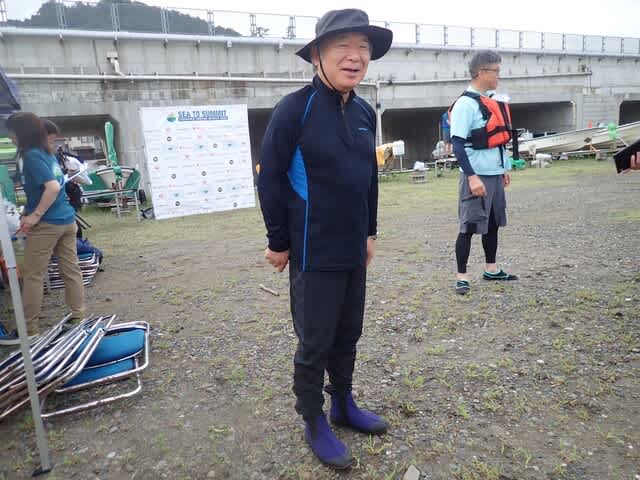 今年は各市長が担当エリアのアクティビティに参加するので、前日にカヤックの特訓(30分くらいw)をうけた米田糸魚川市長は、フォッサマグナミュージアム学芸員の香取さんと二人艇に乗ってカヤック挑戦。