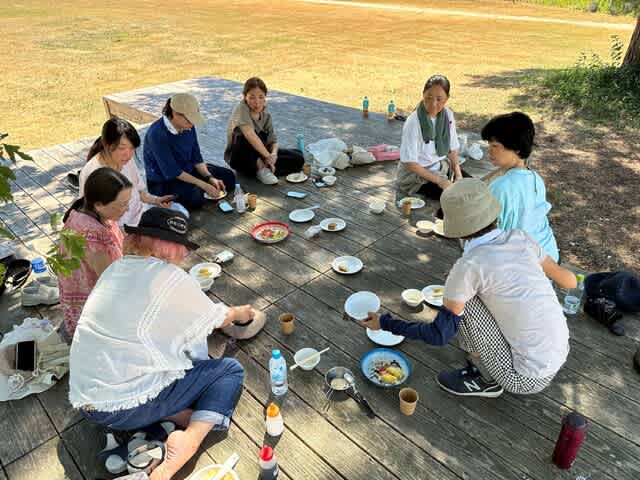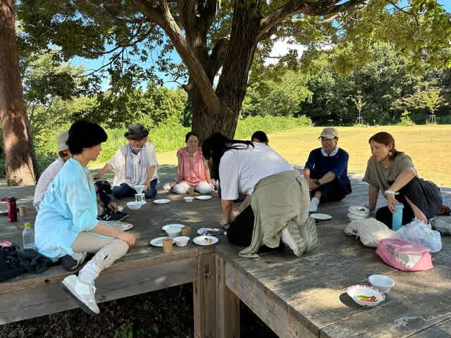 2年ほど前に体験学習棟と向い合せの木陰に高床式のテラスができて以来、みなさんここで寛ぎたがるようになった。