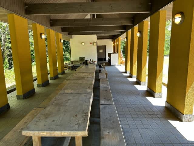 本当は近代建築の黄色い体験学習棟のほうが風通しがよくて涼しいのだが、木陰と高床のテラスの方が魅力的なようだ。