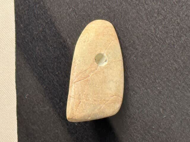 長岡市の岩野原遺跡の大珠未成品・・・孔の底にヘソがなくお椀状の窪みになっている