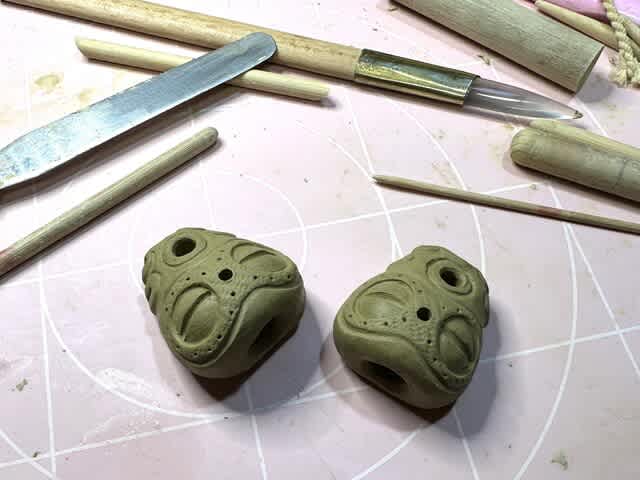 成形したばかりの土偶は生乾きできれいに施文できないので、適度に乾燥させてから施文!