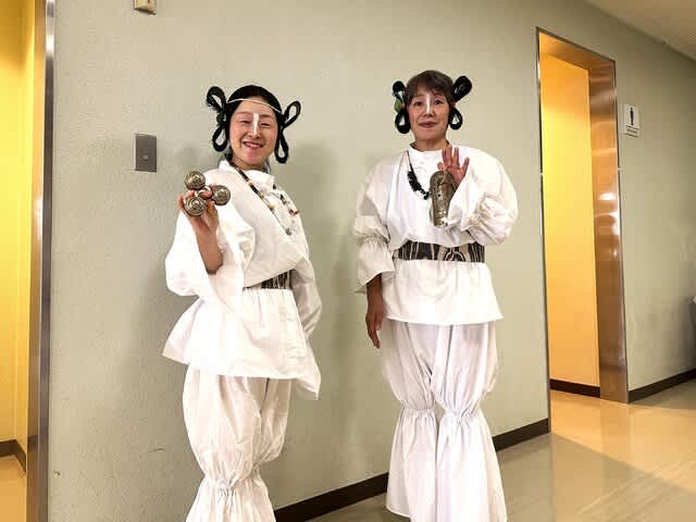「奴奈川姫と日本一の大ウス祭り」のヌナカワ姫コスプレコンテストに勇んで応募した友人2名だが、古代風首飾り・三環鈴・銅鐸を持参した本気さに事務局が恐れをなしたのか、行列要員にまわされた模様・・・本当は他に申込がなかったのだそうだw