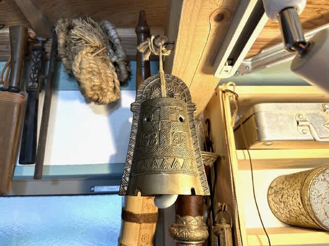 ぬなかわヒスイ工房の銅鐸は舌(ゼツ)がヒスイ勾玉の特製。