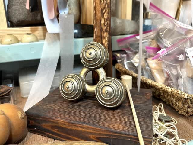 奈良の天河弁財天の三環鈴をモデルにした複製。作者は勾玉の注文をいただいた考古学者。
