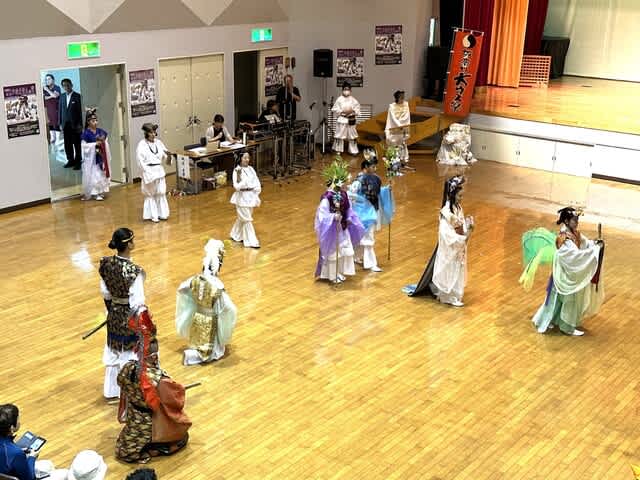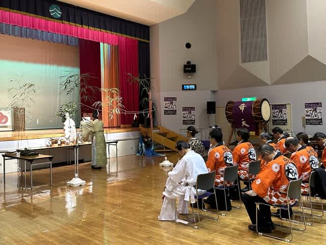 祭りのはじめに神主の祝詞奏上と玉串奉納の儀が厳かに執り行われる本格的な幕開けで、歌劇の様式で式次第が進行。