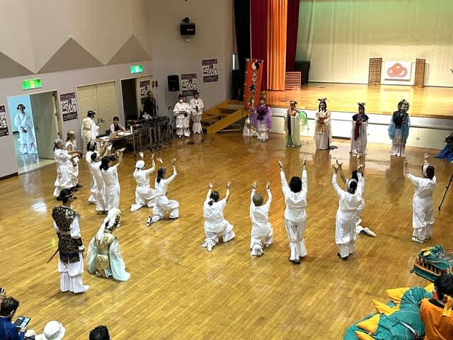 親し気に古代人から声をかけられたら、昵懇をいただいているKさんだった。美豆良のカツラは、黒いカチューシャの端っこに毛糸を巻いた髷をつけてあり、100均で揃う素材ばかりのグッドジョブだ。