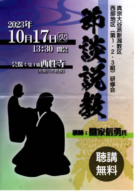 檀家寺の住職にCDをお貸ししたところ、非常に面白いと糸魚川で節談説教が聴けることになりました。