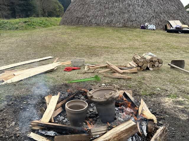 火焔型土器の本場、十日町市の笹山遺跡マルシェで土器の野焼きに出向いた。