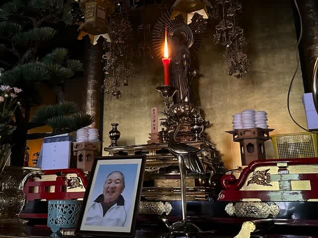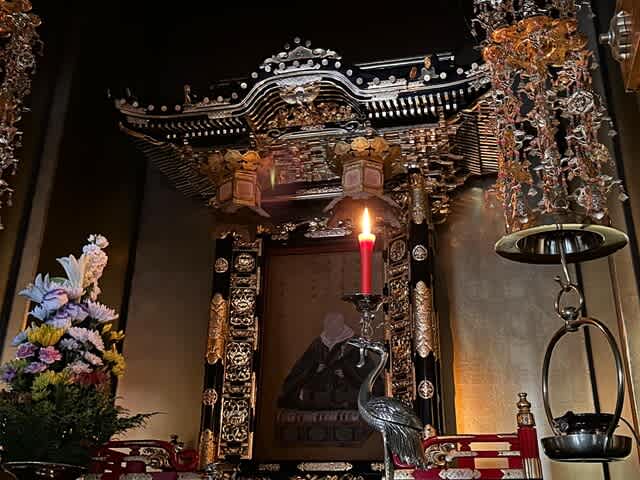荘厳(しょうごん・仏壇の装飾)の金箔に和ろうそくの炎がほのかに反射して厳かな雰囲気になった。これこそ極楽浄土としてご先祖たちがイメージしてきた光景だ。