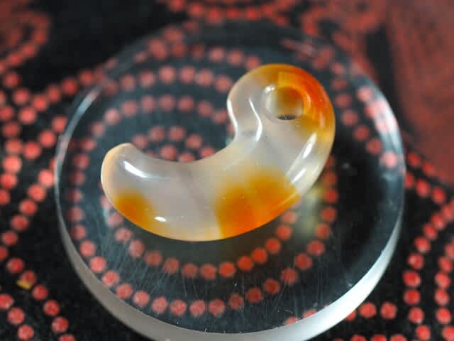 それが如実にあらわれるのが、球体をした頭部が胴部にえぐり込むような動線で鋭角に接続されている、弥生時代の北部九州の定形勾玉や丁子頭勾玉だ。