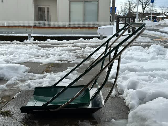 日本海側の雪は湿って重いし、除雪車が通過した後はカチカチに圧雪された氷のブロックになるので、ポリカ製では歯が立たず用途が限定されてしまうのですヨ。新潟県の除雪で活躍するスコップは、柄が鉄パイプの金蔵印が定番。