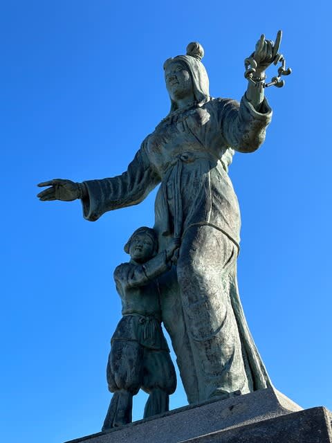 写真は国道8号線沿いに西を向いて建っている奴奈川姫の銅像。何度でも書くけど、わたしの子供のころは東の市街地に向いていたが、平成の大合併の時に向きを180度かえられて、このころから「奴奈川姫は西の彼方におわす八千鉾神を偲んでおられる」といった類いの宣伝文句がでてきたのですネ。