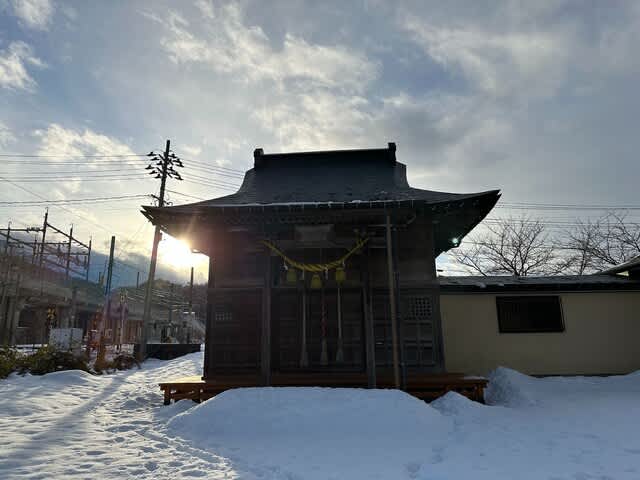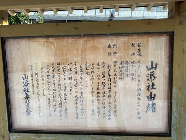 奴奈川左岸の山添神社。多くの神社は南面しているのは「天子南面す」という中国思想の影響によるものらしく、それ以前は祭祀の対象を遥拝する向きに建立されていたと聞く。現在の山添神社は西向きで黒姫山は見えるものの、正確には南南西に黒姫山が見えるのでちょっとだけズレている。建て替えの際に西方浄土思想をうけたものか?今は新幹線の高架が邪魔して見えにくいけどw