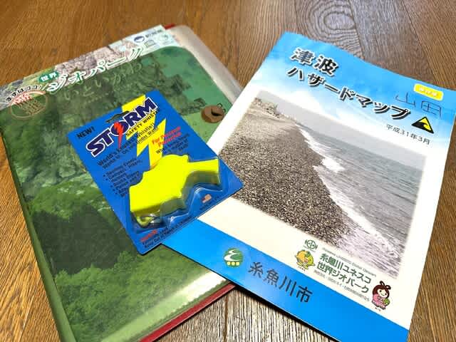 ガイドで持ち歩いている資料に「津波ハザードマップ」を追加して、普段つかいのショルダーバッグには紐をつけた大音量ホイッスルを常備した。