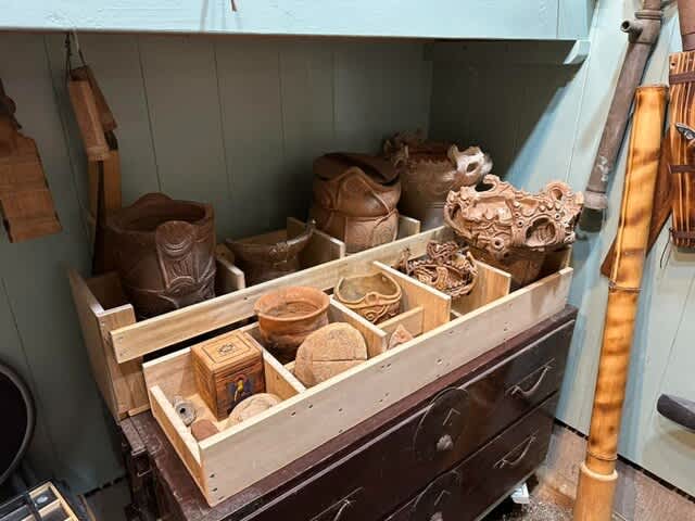 転がった土器は博物館の展示のように釣り糸で固定してしまうと出し入れができないので、タンスの上に動かない工夫をした枠に収めた。