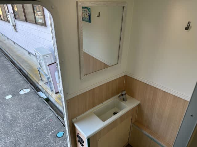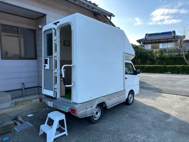 大の方はちょっと狭く、汚物タンク容量も小さいので、予算があれば2サイズでかい車の方がいい。下水管が生きていれば汚物を流すことができ、住職は集会所の下水管の蓋に横付けして、頃合いをみて排出していた。