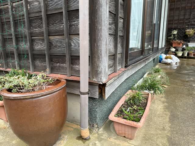 土台がむき出しになっているのもヘンで、最初は化粧板かと思ったが土台そのものだった。この家が建てられた当時は確認申請なしが普通だったそうで、基礎も布基礎で四隅にコンクリート杭を打ち込んであったそうだが、たとえベタ基礎であっても広域液状化現象では耐えられなかったかも。