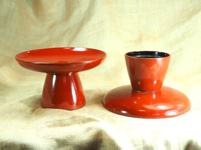 ちなみに狂言の「高坏」は酒を飲む時の大杯のことで、こちらのお供え用の高坏の皿は浅いので酒器には向きません。飲み過ぎないでいいかも知れないけど( ´艸`)
