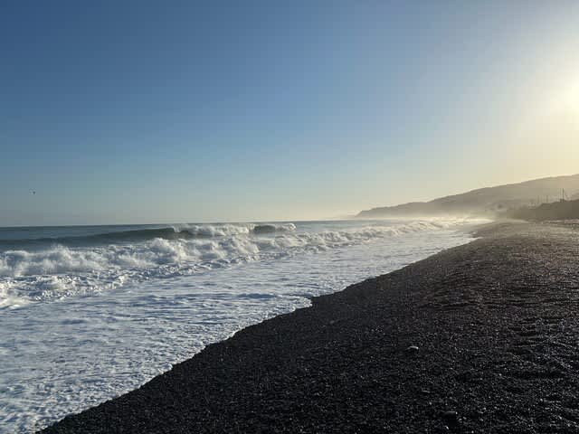 「われは海の子」を地で行くような少年時代をおくってきた氏子たちは、「盆過ぎならこのノタ(波を意味する浜言葉)でもいいけん、今日は沖にもっていかれる」と、禊の朝のヒスイ海岸の危険さを共有しているところが嬉しい。盆過ぎならいいけんとは言っても、波にグルグル巻かれるのが楽しかった少年時代の思い出を暗喩しているので、普通の人は真似しちゃダメW