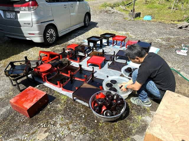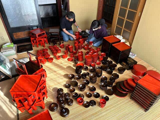 わたしを含めて被災者とその友人夫婦の四人がかりで8時間の作業の間、輪島漆器の基礎知識や手入れ法、真贋の見分け方などの雑談をしたら面白がって聞いてくれた。