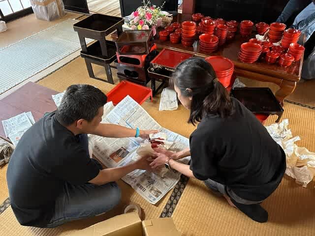 「輪島漆器販売義援金プロジェクト」で漆器の搬出、汚れ落とし、梱包までの咲きを被災者にお手伝いしてもらう方式に変更してから第一号が穴水の案件。