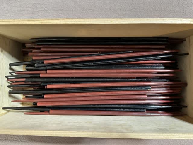 被災者の輪島漆器を代行販売して義援金を渡すボランティアをしていると自己紹介したら、災害関連ゴミとして捨てる予定だった大量の塗り箸をいただいた。