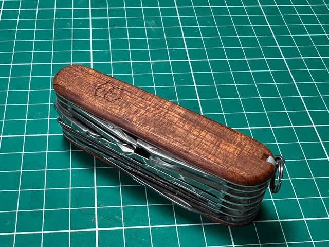 ビクトリノックス社の「チャンピョン」という1万円以上もする高級品で、あれば便利だけど使い心地は各ツール単品に劣り、自分で買うには躊躇する値段だから買わない筆頭のアウトドアグッズですな。でも連絡なければもらっちゃいますぞ。