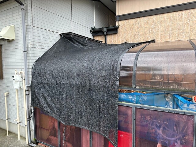 光率70%と銘打ったホームセンターで買った遮光メッシュシートは、熱を吸収しやすい黒でもそれなりに涼しくなり、西日がもろに当たる台所前のカーポートに被せるとだいぶちがう。
