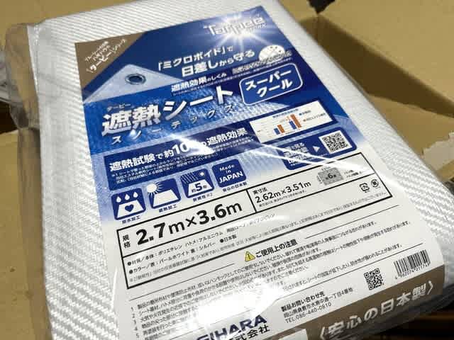 素材はブルーシートと同じポリエチレン製だが、光を乱反射させる加工により遮熱効果を高めていて期待できそうだ。