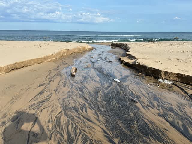 琴ケ浜を流れる小川には大量の砂鉄も流れているので、上流部に大きな花崗岩の岩山があるに違いない。