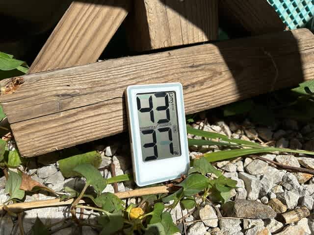 ダブル遮光ネットの地面の温度は10℃以上も差が出たので驚く。ホームセンターの安物でも使いようと実感。