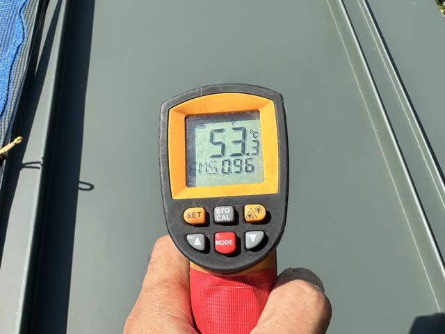 ①ガルバリウム鋼板屋根の表面温度53.3℃