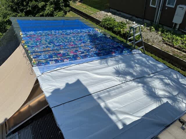 空き缶クーラーより遮熱シートの方が遮熱効果は高いし、仕事も早いのだが、その差がそのまま室温の差にはならないようだ。