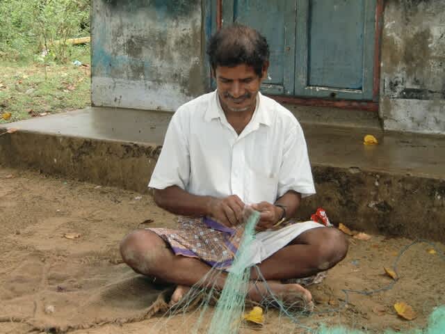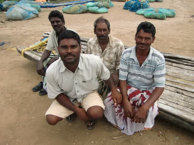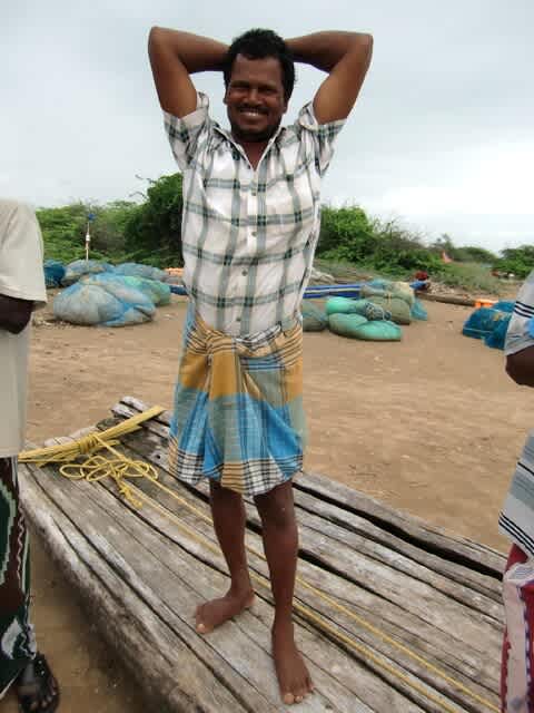 とある南インドの漁師たちは開襟シャツを着ているが共通のオシャレなのかも。一般的にはランニングシャツか裸が多い。