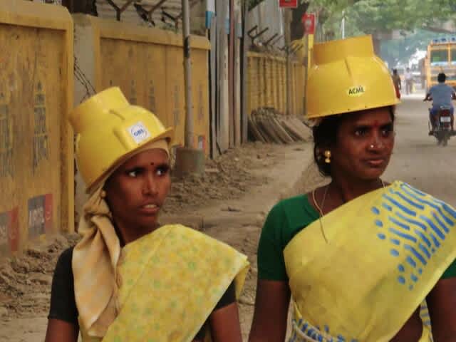 南インドの肉体労働者は頭上運搬用のヘルメットをかぶっていたが、一回しかみたことはないw