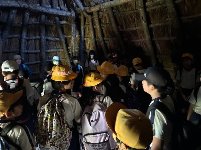 富山で先生をしているFB友達の本村さんの紹介で、富山県黒部市立たかせ小学校の遠足で、高学年70名弱を長者ヶ原遺跡ガイドした。