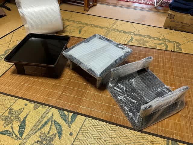 以前は四苦八苦していた宗和膳(四つ脚膳)の梱包も楽勝になったが、人に教える時間がもったいない。