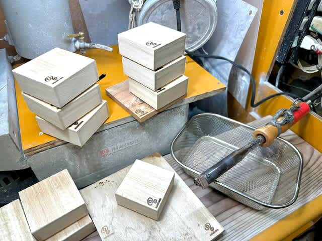 仏間に漆器を戻し、漆器通販の梱包と金銭管理、打合せの連絡まちの合間に桐箱に焼き印をおして作品展の準備。