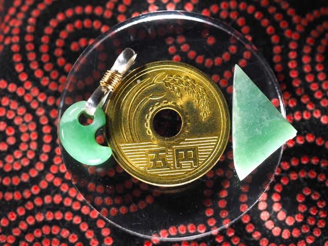 現在はどれも流通しない希少な原石だから、小さな欠片も大事にとっておき、ここぞという時に作品化する。わたしは希少なヒスイの端材で短冊形のストラップをつくっても作品とはいえないと考える。