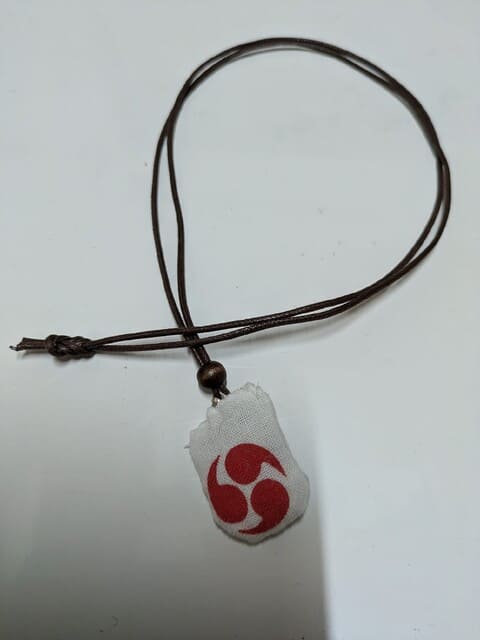 帰宅してすぐに東日本大震災の時の復興手拭で手つくりした、かわいらしいお守り袋の写真を送って頂く。人柄そのままの温かいお守り袋だ。