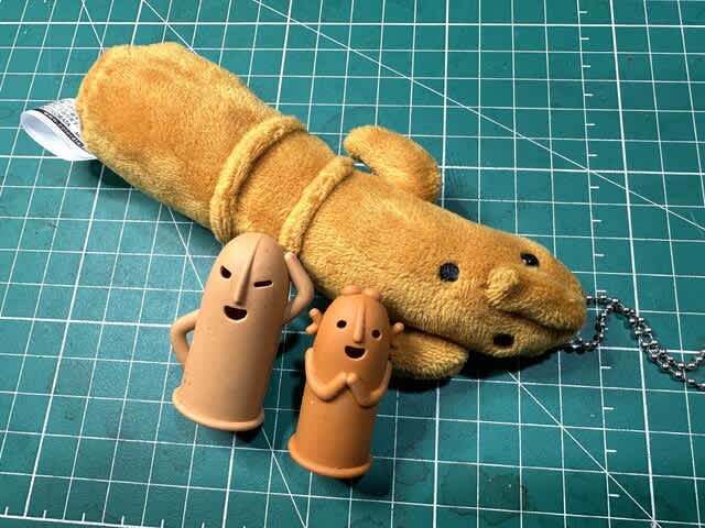世はハニワブームなのか、あいついで来客から指サック、ぬいぐるみをいただく。