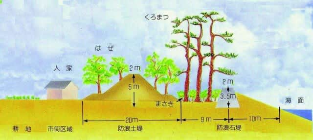 「広村堤防」は今も現存していて、写真で確認する限りでは、日本海沿岸に多い自然堤防のように見え、その涼やかな風景は国指定文化財に認定されている。